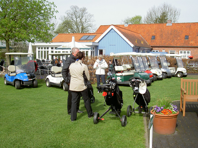 Was war das heute für ein wunderbarer Tag zum Einstieg in die Golfsaison, (für mich war heute das erste Turnier), und was für ein schöner Golfplatz. Die Fairways akkurat gemäht, das Grün trocken und schnell, was wünscht sich ein Golfer mehr, außer dass der geschlagene Ball auch ins Loch geht. Das Wetter spielte mit, der Wind blies die Wolken fort, manchmal auch unsere Bälle und die Sonne schienen vom Himmel. Der Platz ist umgeben mit vielen Bäumen und Büschen im frischen Maigrün mit zarten Blüten in Weiß und Rosa.